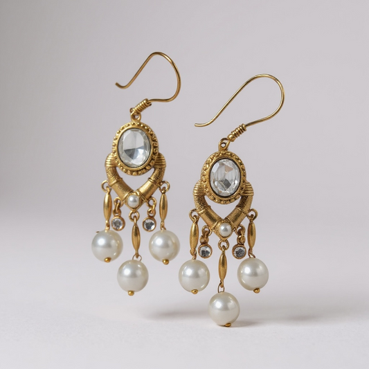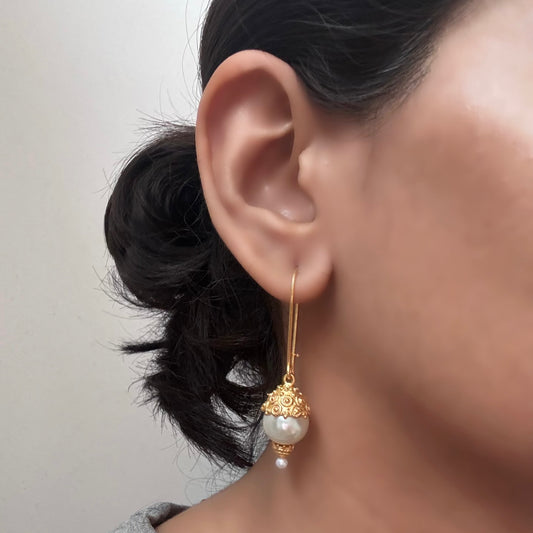 Golden Drop & Pearl Earrings