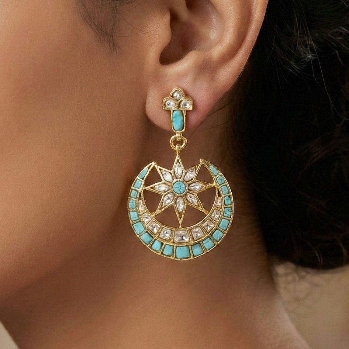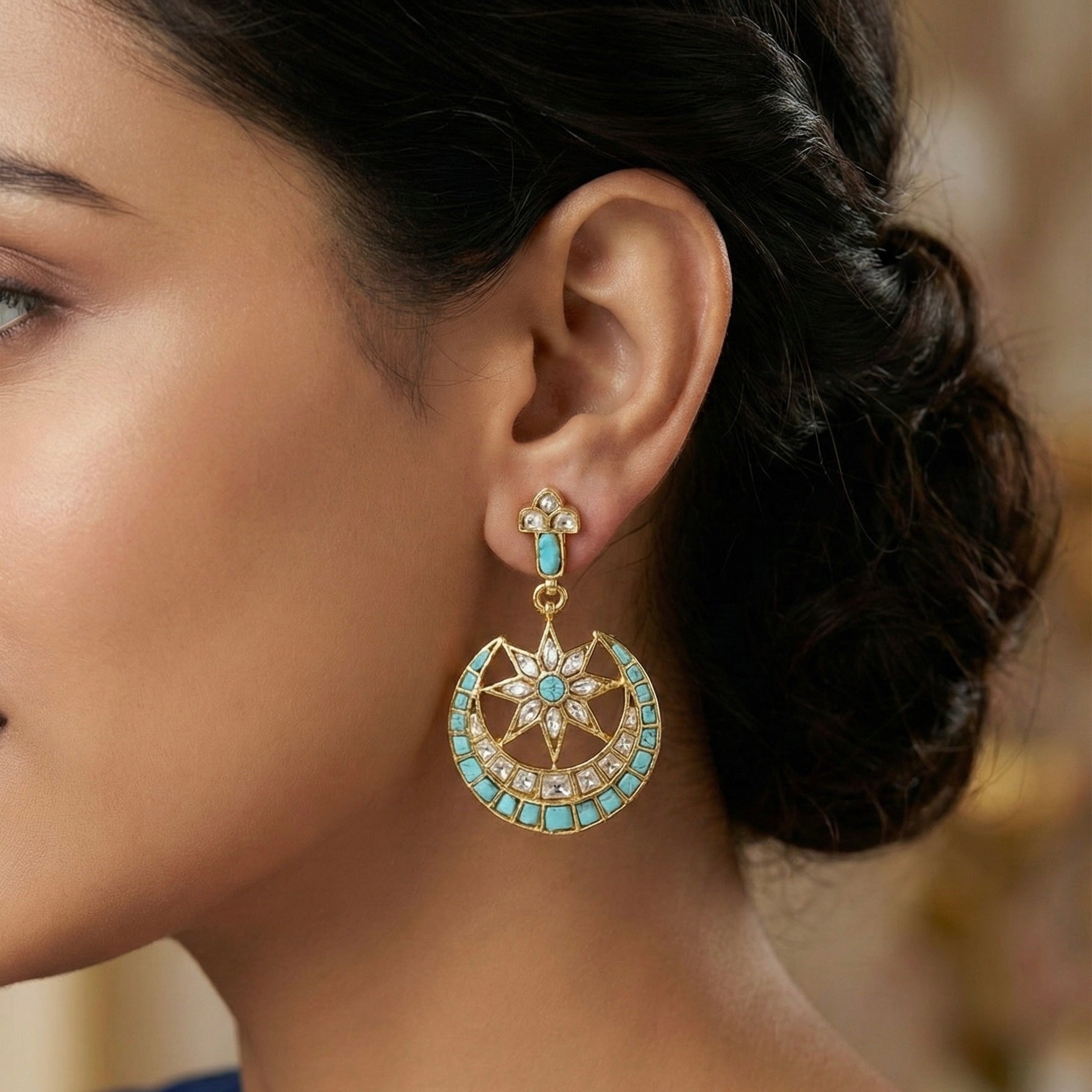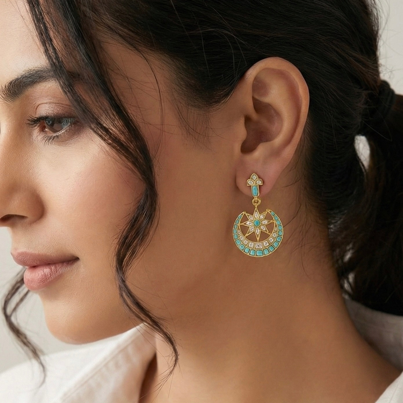 Brass with Gold Plating. Made using kundan polki & pearls. Perfect choice for weddings and other festivities.